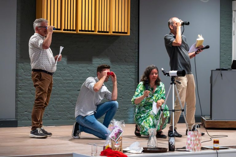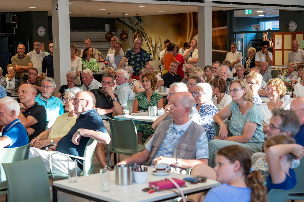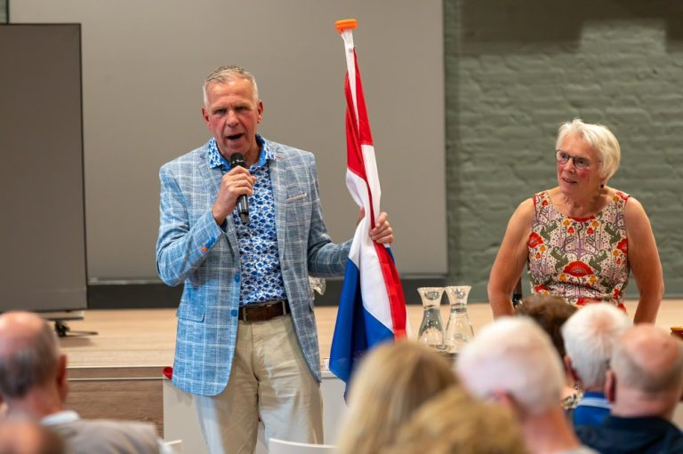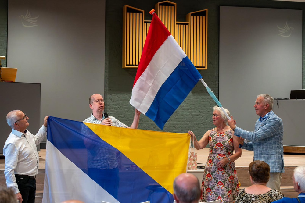 Impressie afscheidsreceptie ds. Piet Rozeboom De Voorhof vrijdag 4 juni 2025. Het was gezellig druk. Ds. István Visky uit Roemenië sprak Piet en Margreet Rozeboom toe. De collega’s waren present met een leuke sketch en een toepasselijk lied. Het cadeau vanuit de gemeente – een vlaggenmast voor bij de toekomstige woning van Piet en Margreet in Ommen – werd symbolisch overhandigd. Ds. Piet sprak mede namens zijn vrouw Margreet, hun dankbaarheid uit voor de mooie en waardevolle tijd die ze in Rijnsburg gehad hebben.