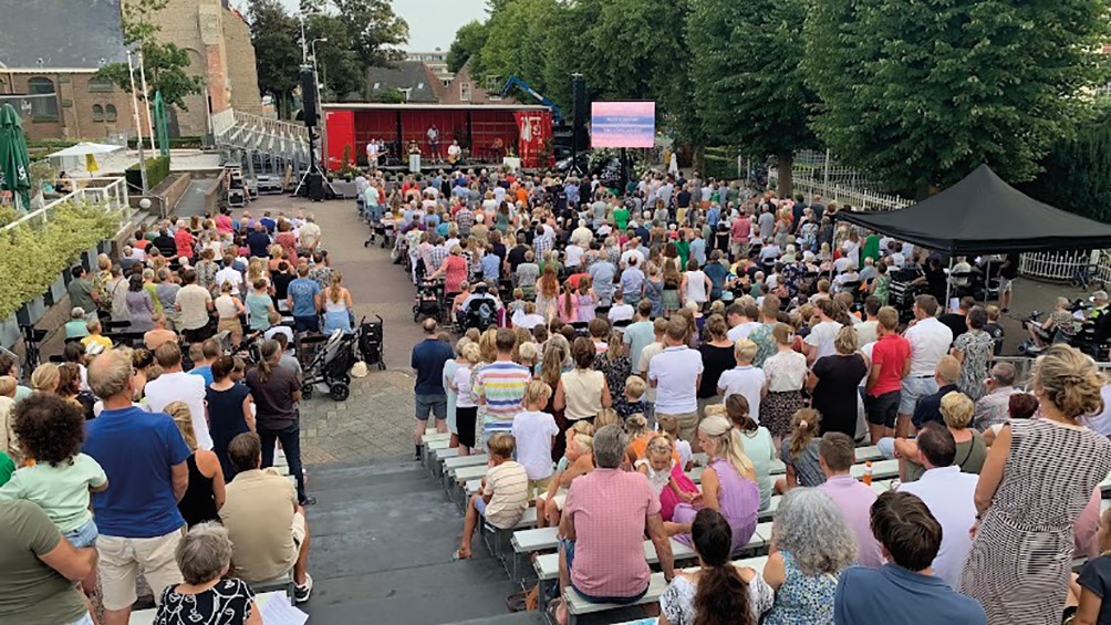 We houden een aantal maal per jaar een dienst op het Burgemeester Koomansplein, op eerste Pinksterdag, zondagavond na de feestweek en voorafgaand aan de startweek. Door het karakter van deze diensten is het uitnodigend naar iedereen in Rijnsburg. Na afloop is er gelegenheid om elkaar te ontmoeten onder het genot van een drankje en een hapje.